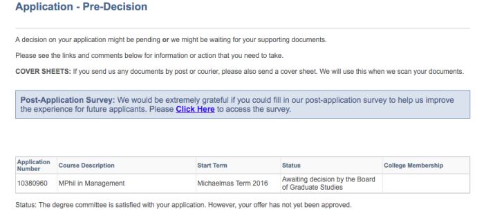 ช่วงนั้นก็เสียใจไปเหมือนกัน เพราะคิดว่า Imperial น่าจะเข้าง่ายกว่า Cambridge (เออเองแบบ ignorant มาก 5555) เรายังแอบเคืองๆเจ้าหน้าที่ของมหาลัยด้วย