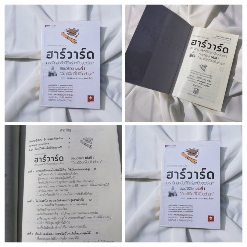 ในร้านหนังสือมีหนังสือแนวจิตวิทยาพัฒนาตนเองอยู่หลายเล่มแต่ละเล่มก็มักเขียนโดยคนที่ประสบความสำเร็จด้วยกันทั้งนั้น ฮาร์วาร์ด มหาวิทยาลัยที่ดีแห่งหนึ่งของโลก สอนวิธีคิด เล่มที่ 1 "วิชาชีวิตที่ไม่มีในตำรา" แค่พิมพ์ชื่อหนังสือเล่มนี้แบบเต็มๆ ก็ได้หนึ่งบรรทัดพอดี ชื่อของหนังสือที่มีความยาวกว่าเล่มอื่นๆ ทำให้เรารู้สึกสะดุดตาขึ้นมาและพออ่านชื่อหนังสือให้ดีก็เห็นว่าเป็นหนังสือพัฒนาความคิดในการชีวิต มีเล่ม 1 ก็แสดงว่าต้องมีเล่ม 2 ใช่แล้วล่ะ ฮาร์วาร์ดเป็นหนังสือที่ถูกเขียนขึ้นไว้ด้วยกันถึงสองเล่ม มีความแตกต่างกันอยู่ที่สีของปกและชื่อวิชาคือ ฮาร์วาร์ดเล่มที่ 1"วิชาชีวิตที่ไม่มีในตำรา" มีปกสีขาว ส่วน ฮาร์วาร์ดเล่มที่ 2 "วิชาความสำเร็จของคนคิดเป็น" มีปกสีดำ ทั้งสองเล่มไม่ได้เป็นภาคต่อของกันและกันแต่ถ้าใครคิดอยากจะศึกษาต่อก็มาอ่านที่เล่ม 2 ได้