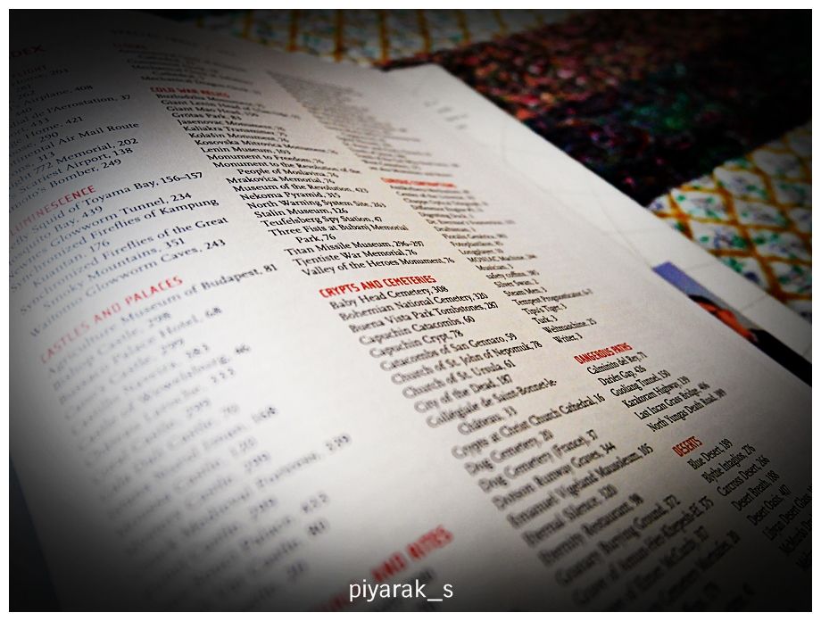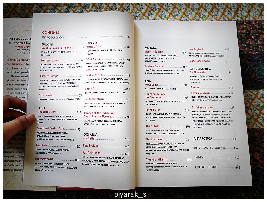 ในส่วนของการเรียบเรียงเนื้อหาข้างในตัวเล่ม ก็จะคล้ายกับแผนที่แอตลาส (ที่ไม่รู้ว่าเด็ก ๆ เดี๋ยวนี้ ได้เรียนการอ่านแผนที่และใช้แผนที่แอตลาสกันหรือเปล่านะคะ) คือ แบ่งเป็นทวีปต่าง ๆ และประเทศที่เป็นที่ตั้งของสถานที่และเหตุการณ์ปริศนาในทวีปนั้น ๆ