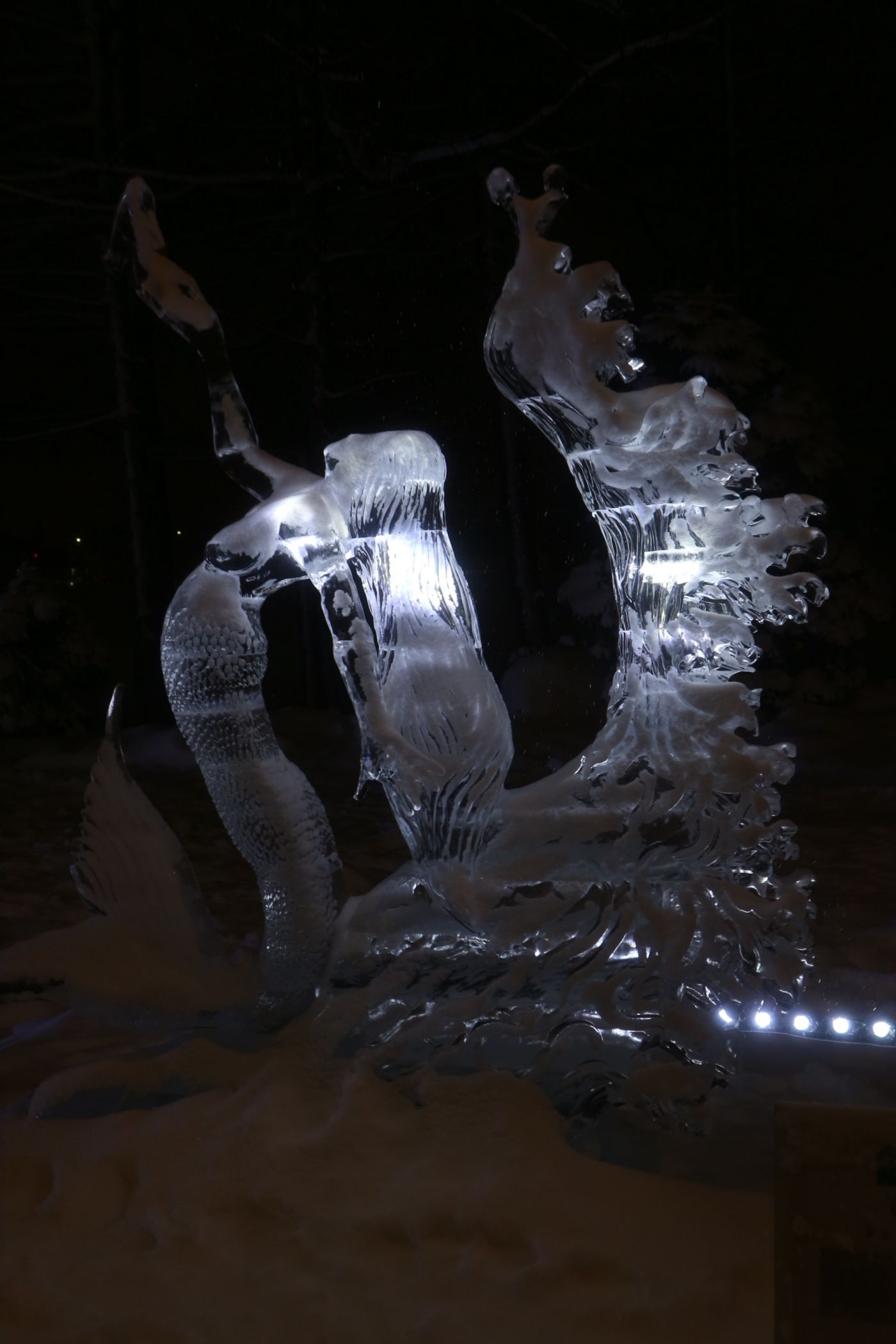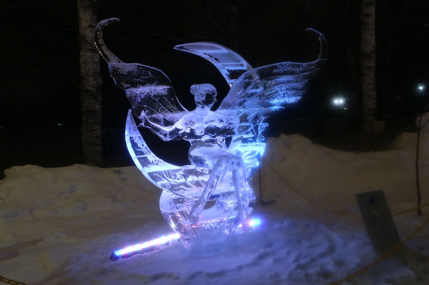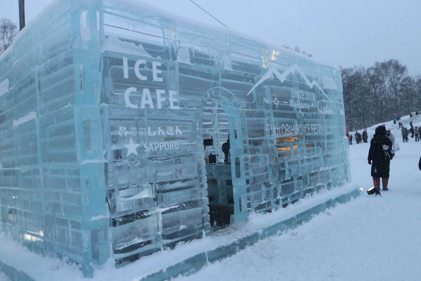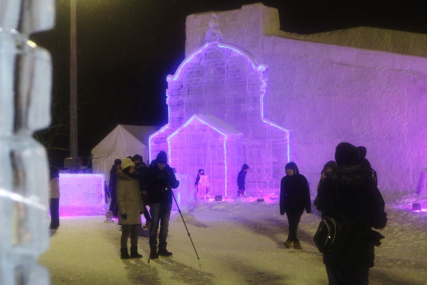 ทางเข้ามีน้ำแข็งแกะสลักจากฝีมือคนในเมือง