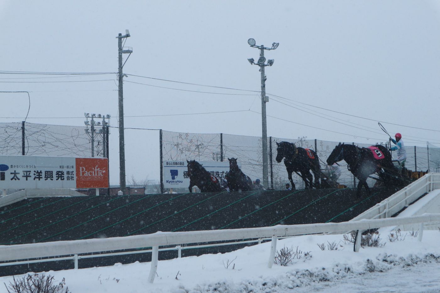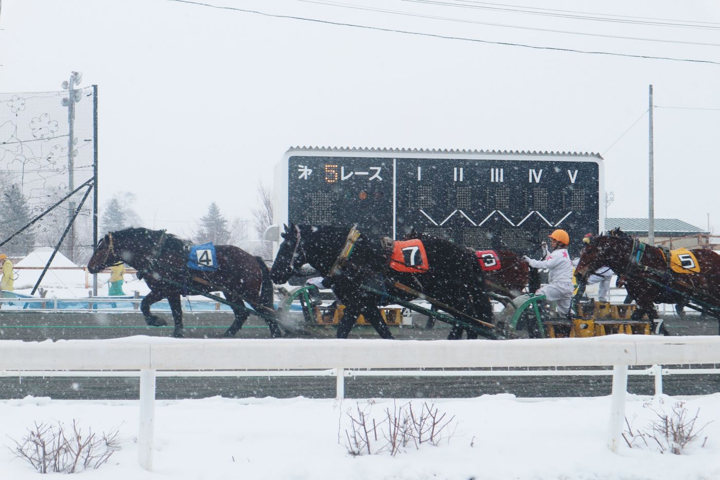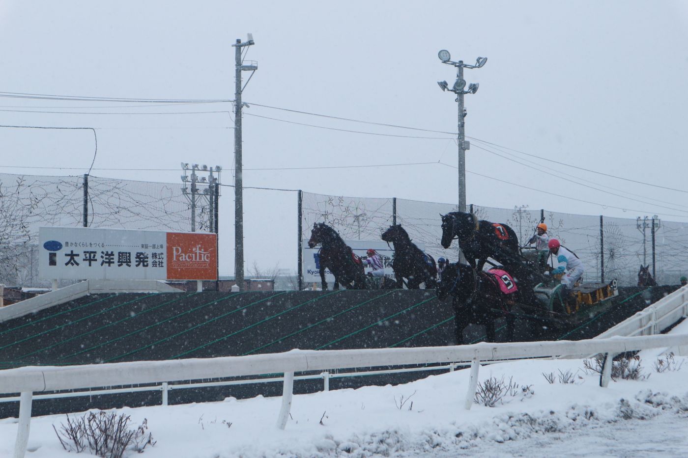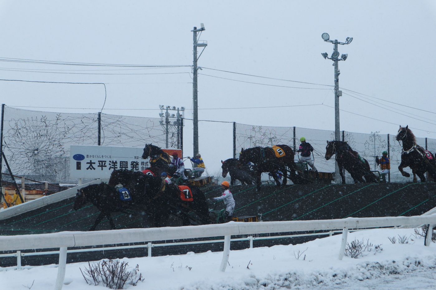 พอออกสตาร์ทจะมีเนิน 2 เนินให้ม้าข้าม ซึ่งม้าที่จะแข่งได้ต้องลากเลื่อนหนัก 450 กิโลขึ้นไป ถึง 1 ตัน
