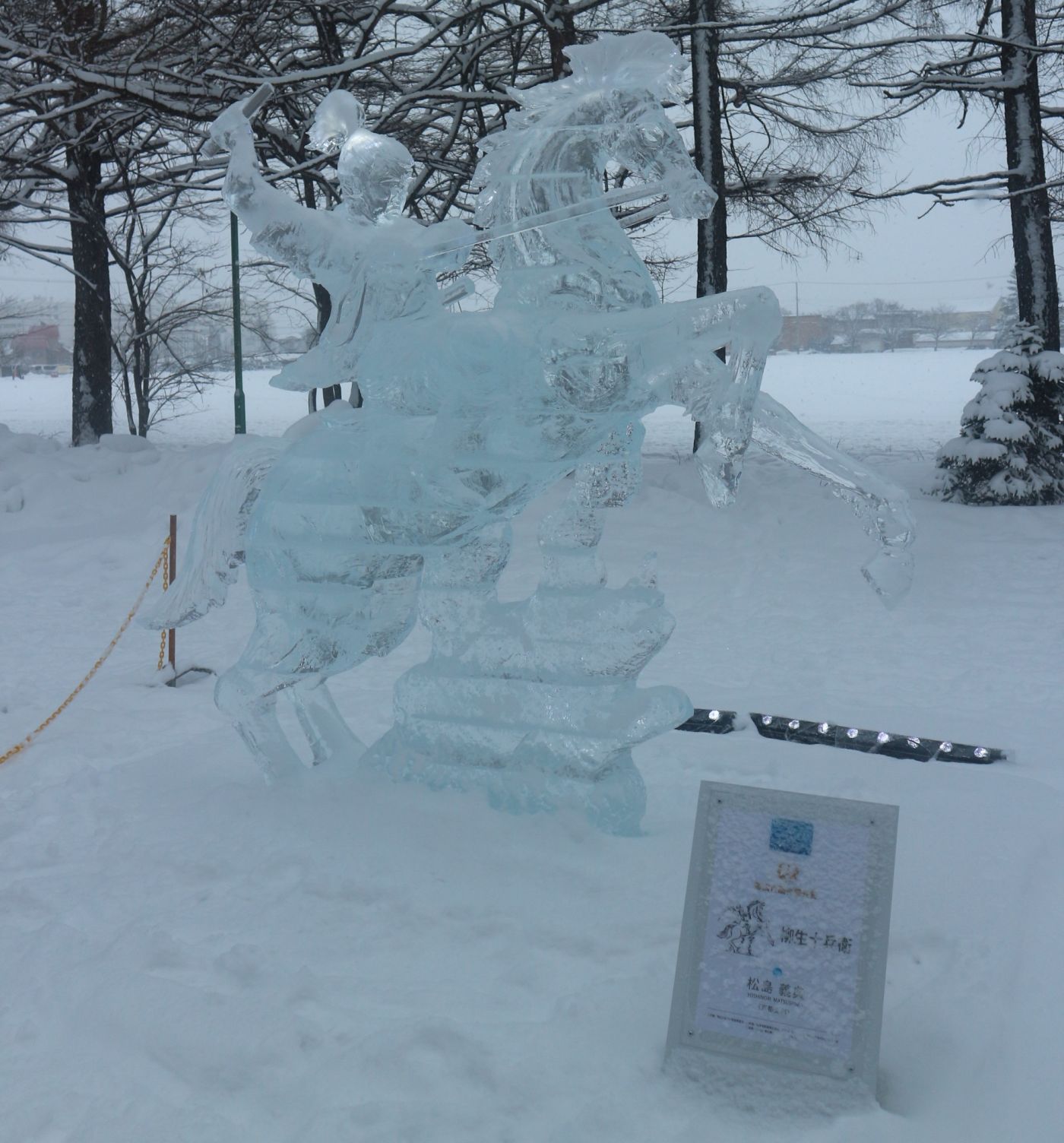 นั่งแท็กซี่ประมาณ 5 นาทีก็ถึงสวนสาธารณะมิโดริงาโอกะที่จัดเทศกาลน้ำแข็ง