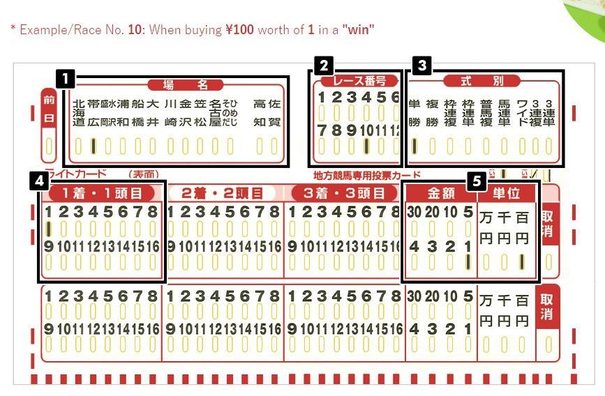 ช่อง 4 ฝนเบอร์ม้าที่เลือกสำหรับ 1 เบอร์ และ 2 เบอร์ช่องข้างๆ ช่อง 5 คือจำนวนเงินและหน่วยเงิน